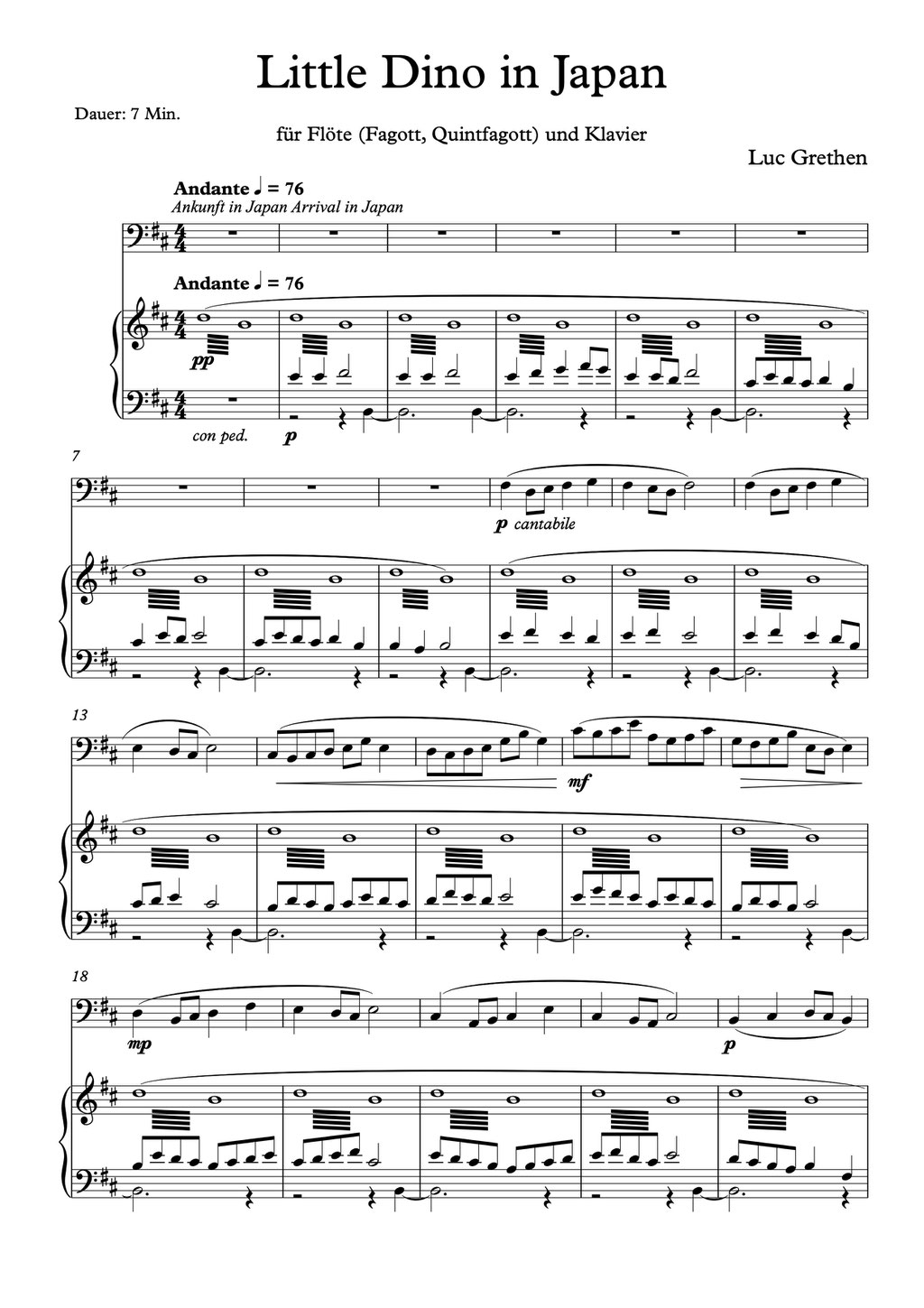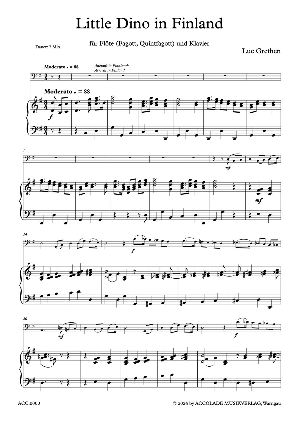 This composition is kept on an easy level for the bassoon as well as for the piano and consists of 7 different parts whose style describes the respective region or country. The composer greatly enjoyed working on these pieces and therefore chose the motto: "May you enjoy playing your instrument as much as I enjoyed composing for you!"